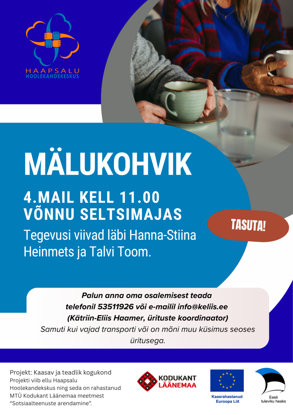 Mälukohvik pakub huvitavat tegevust, lõbusat seltskonda ja koosolemist. Oodatud on eakad inimesed sh mäluhäirega inimesed, nende pered ja kogukond. Mälukohvik (Memory Coffee) on alguse saanud Inglismaalt, kus pakutakse kooskäimise võimalust eakatele, et tugevdada sotsiaalseid suhteid ja ennetada mäluhaigusi.