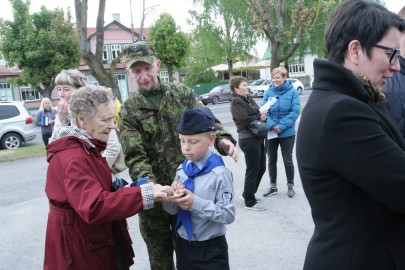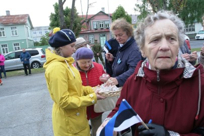 Pühapäeval, 4. juunil Eesti lipu päeval, kinkis Haapsalu linn Haapsalu Sotsiaalmajale majalipu. Kõigile, kes varajasel hommikutunnil Eesti lipu päeval osalesid, kinkis Haapsalu Linnavalitsus kauni reväärimärgi Eesti-Haapsalu, mida jagasid Läänemaa kodutütred. Kõigile kokkutulnuile pakuti hommikukohvi. (Fotod Arvo Tarmula)